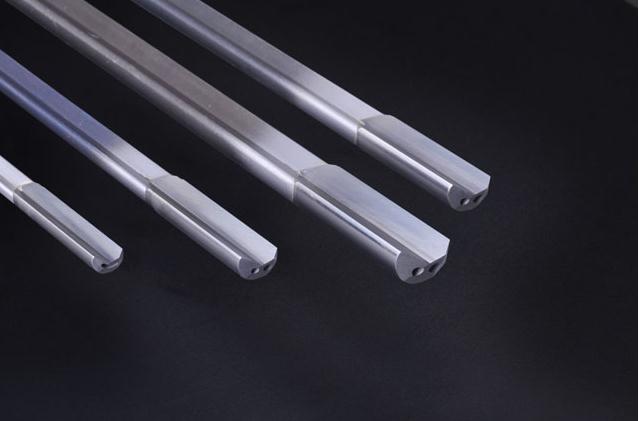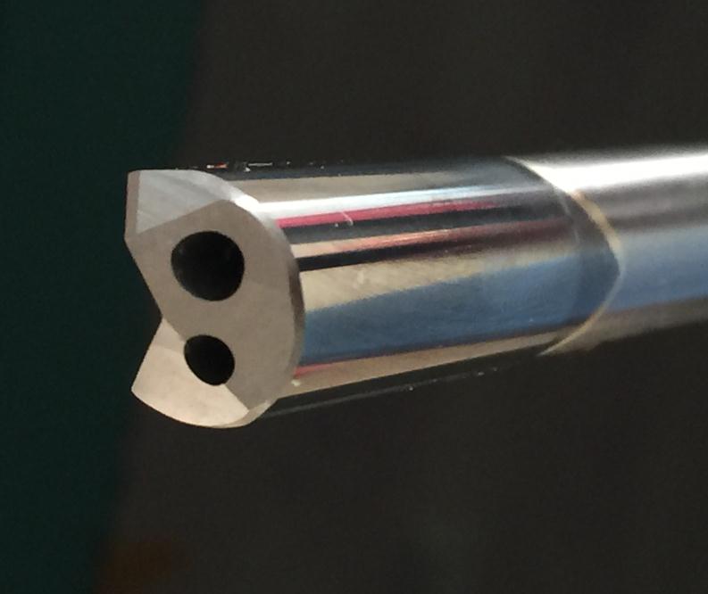 針對以上加工特性,現在市場上小直徑的槍鉆采用整體鎢鋼刀柄,大大提高了刀具的剛性,對于抗粘附性則采用切削合金部分涂層處理,通過涂層,大大提高刀具的耐磨性,抗粘附性。